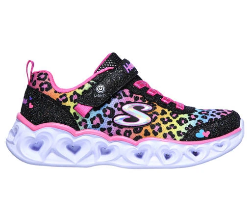 Todella kevyt, jalkaan sujautettava, rento ja sporttinen lenkkitossu Skechers S-Lights Heart Lights – Love Match vilkkuvilla valoilla ja korostusompeleilla.